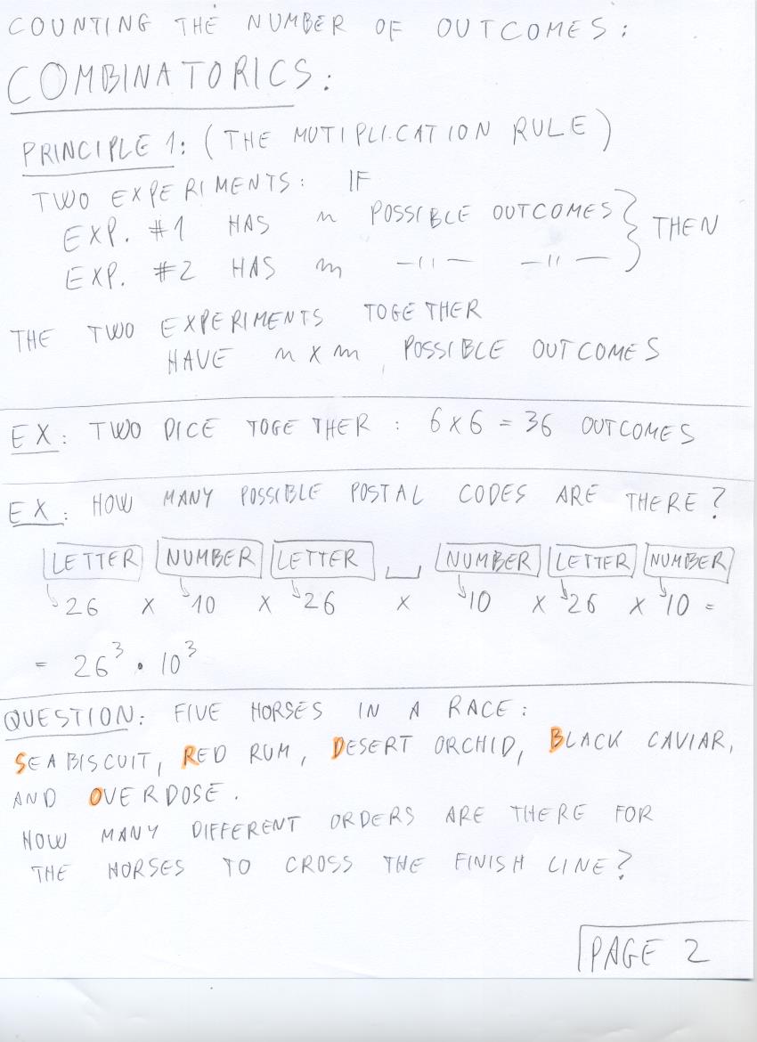 - July 2 (combinatorics: multiplication rule, race horses):