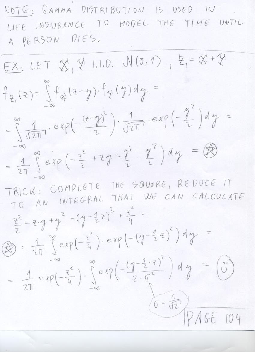 - August 1 (convolution, Gamma distribution, convolution of normals, conditional p.m.f. and p.d.f.):