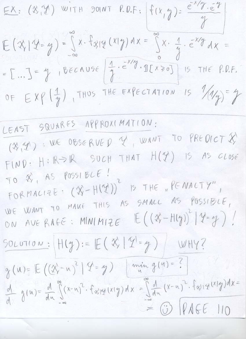 - August 5 (conditional expectation, least squares estimate, law of large numbers, central limit theorem):