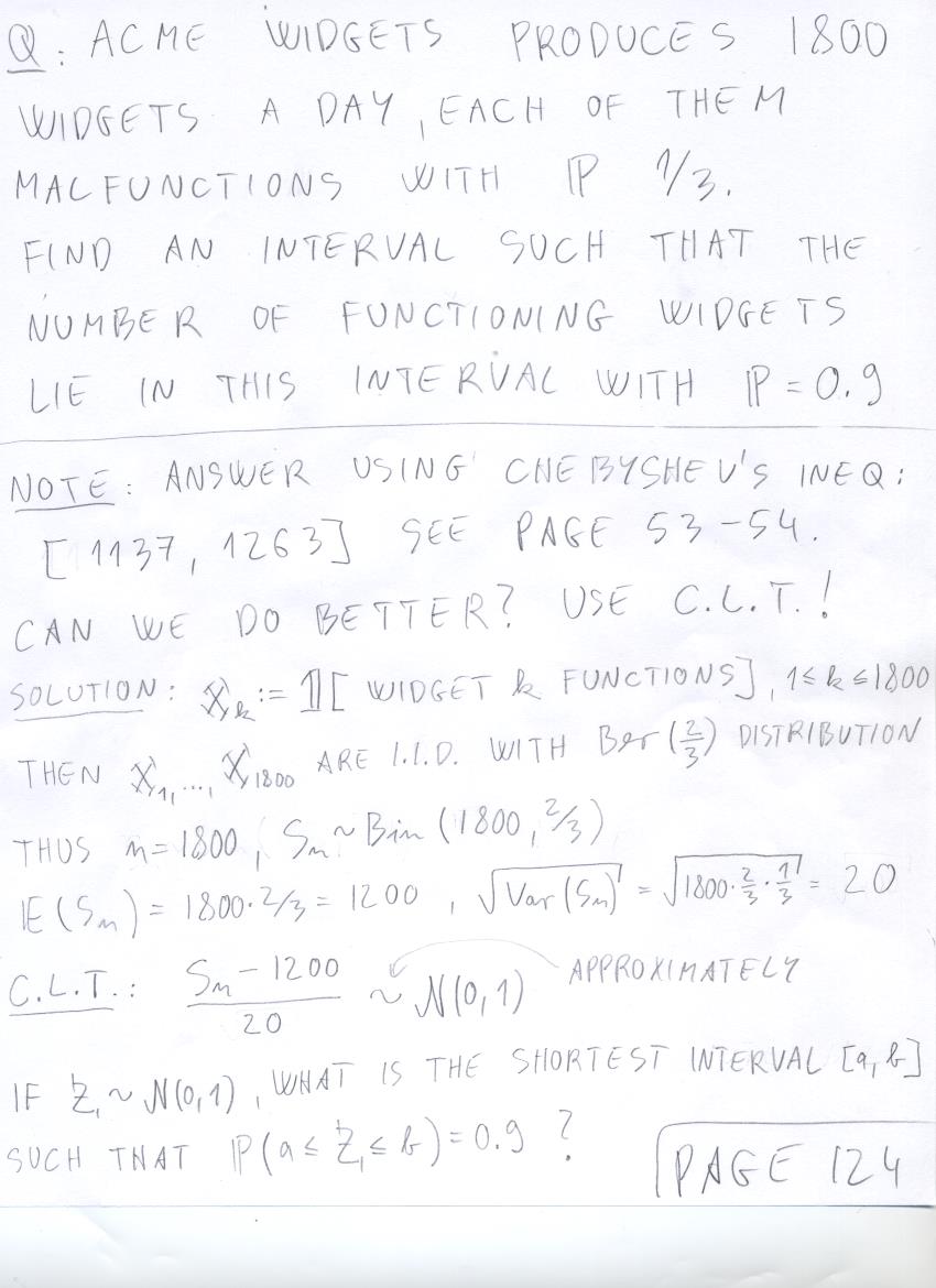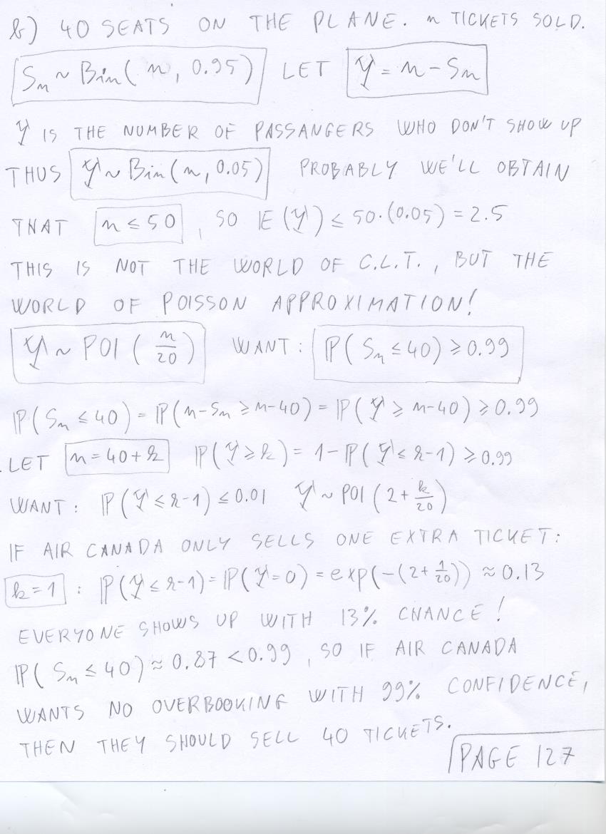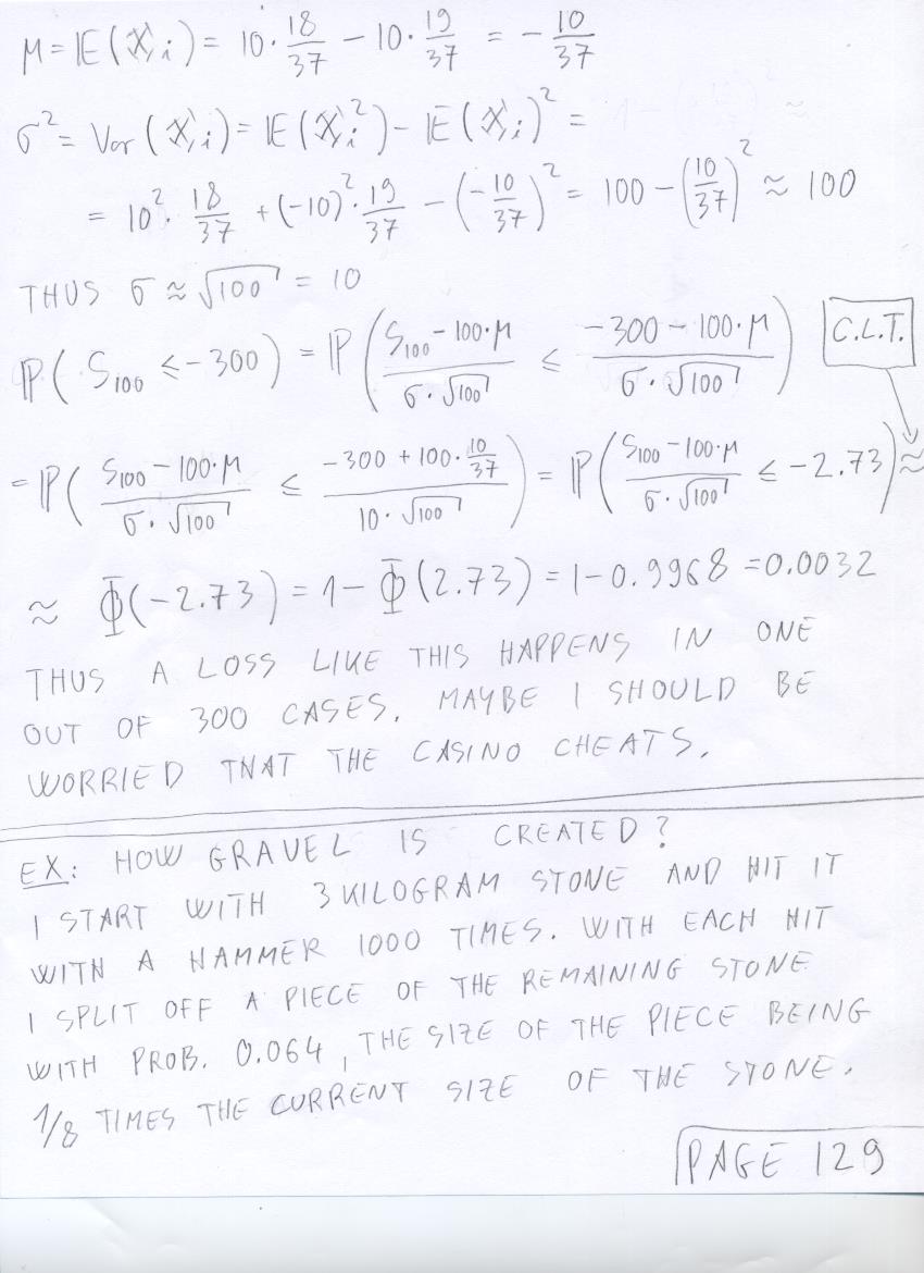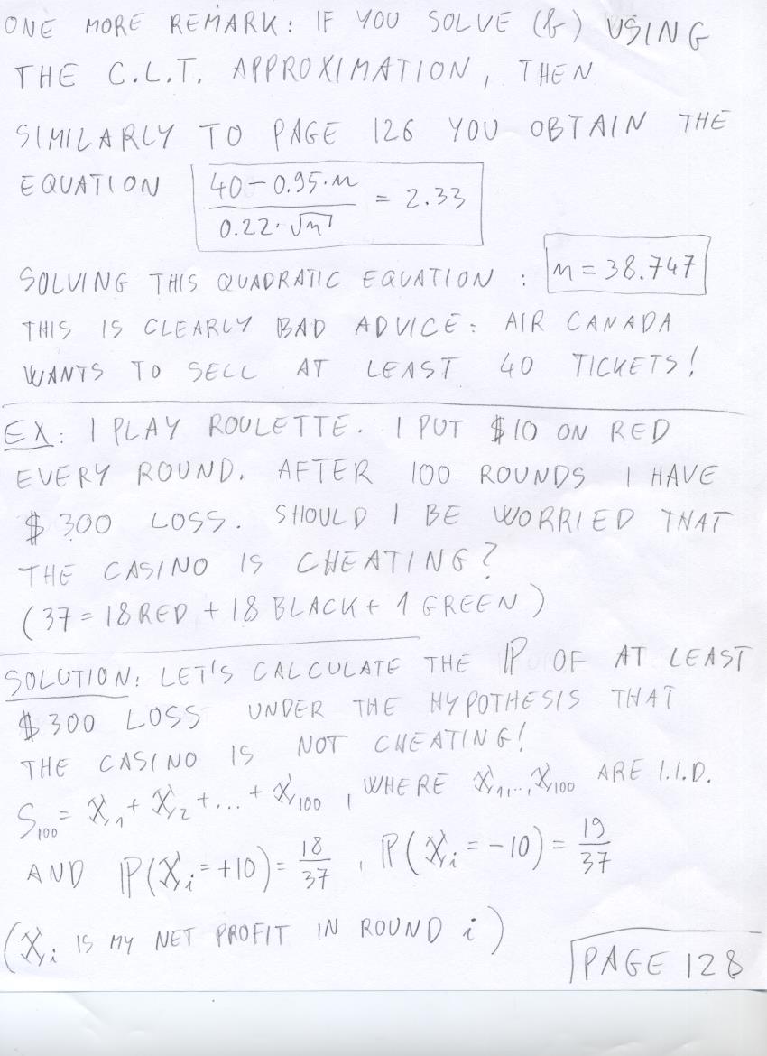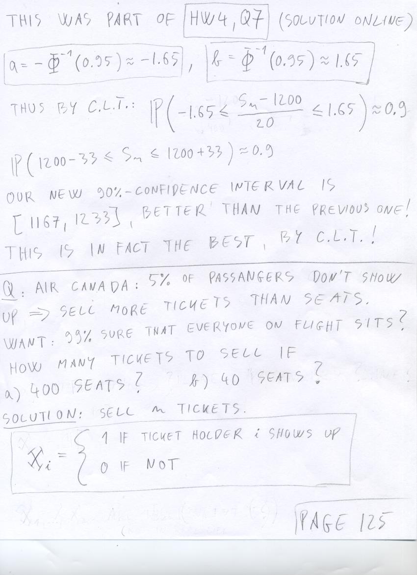 - August 7 (central limit theorem exercises: widgets, airplane overbooking, roulette loss, gravel creation):
