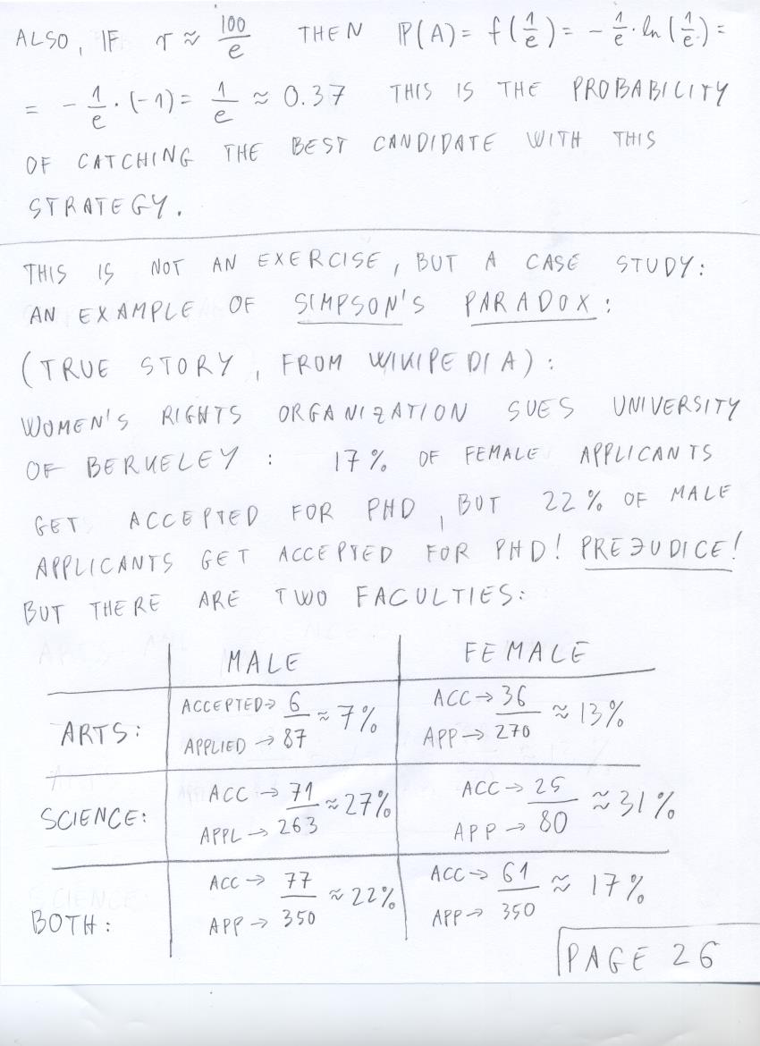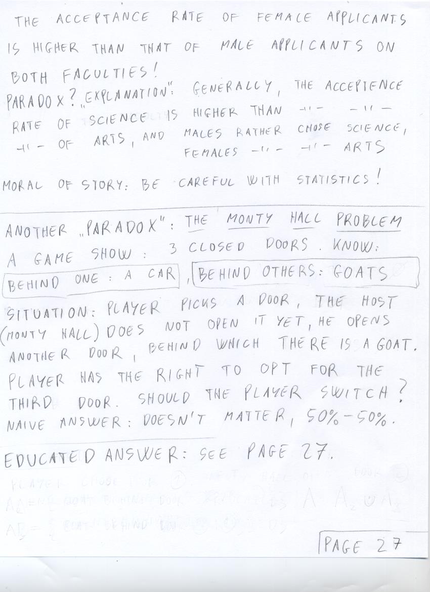 - July 15 (gambler's ruin, job applicant choice problem, Simpson's paradox, Monty Hall problem):