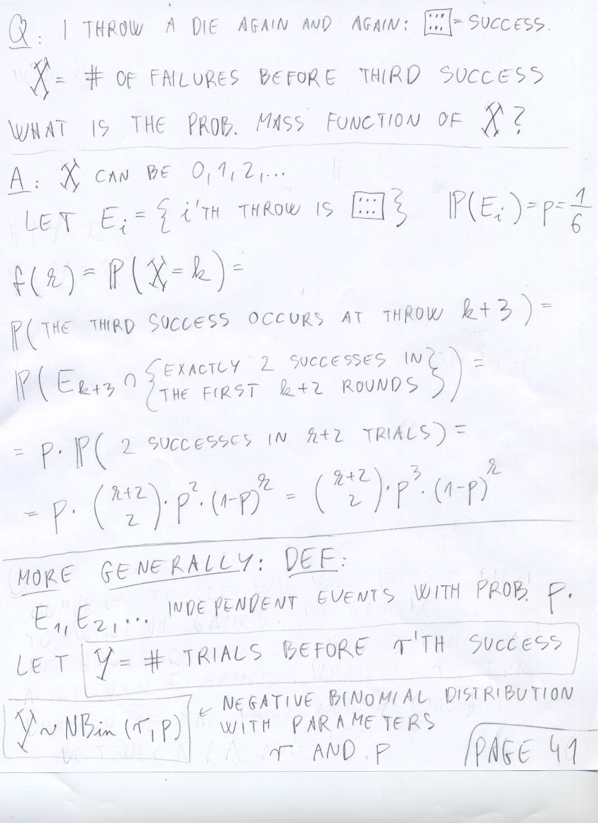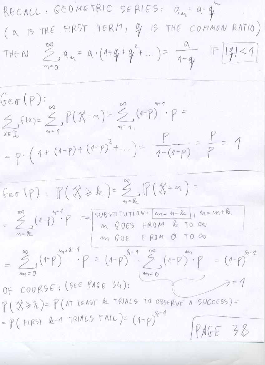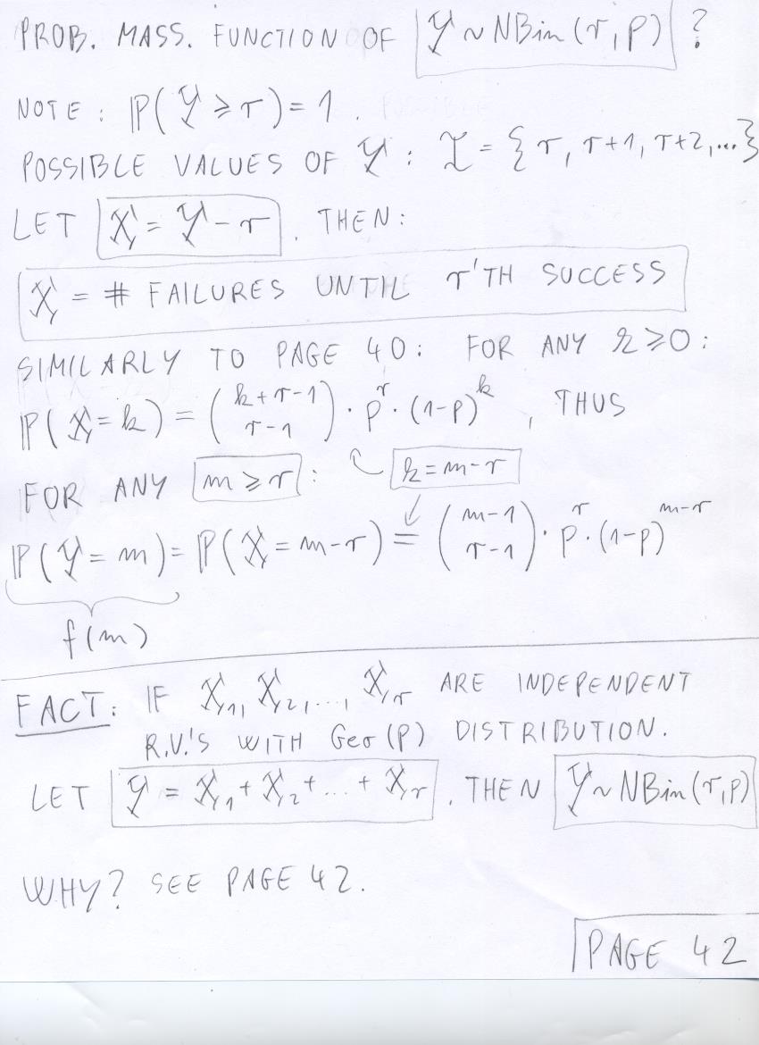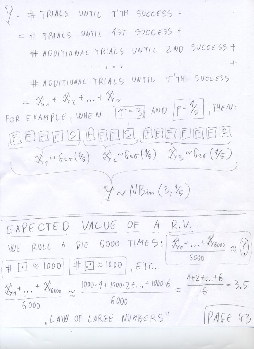 - July 17 (discrete R.V.'s, total mass of mass function is 1, NBin(r,p), expected value of Geo(p)):