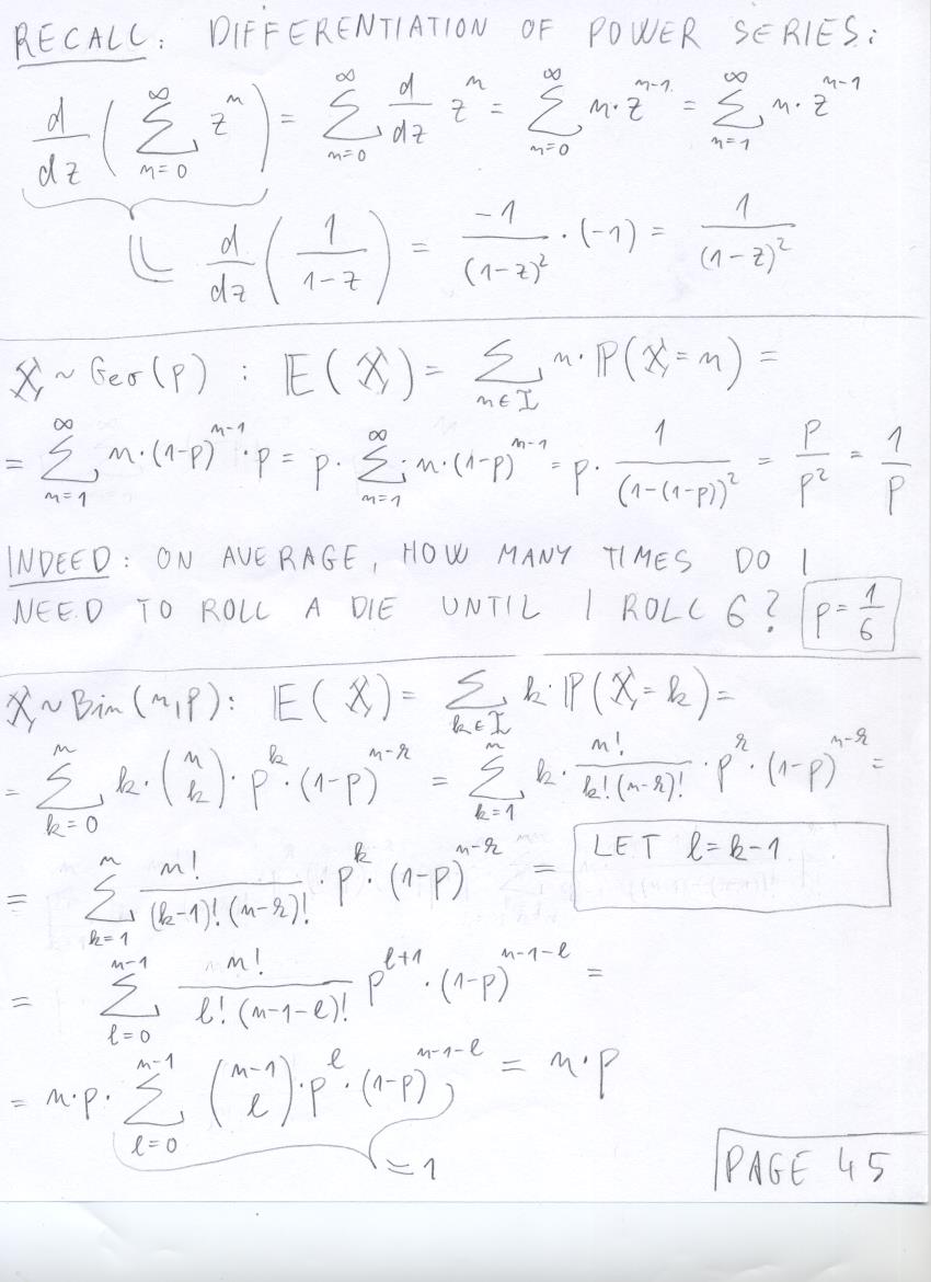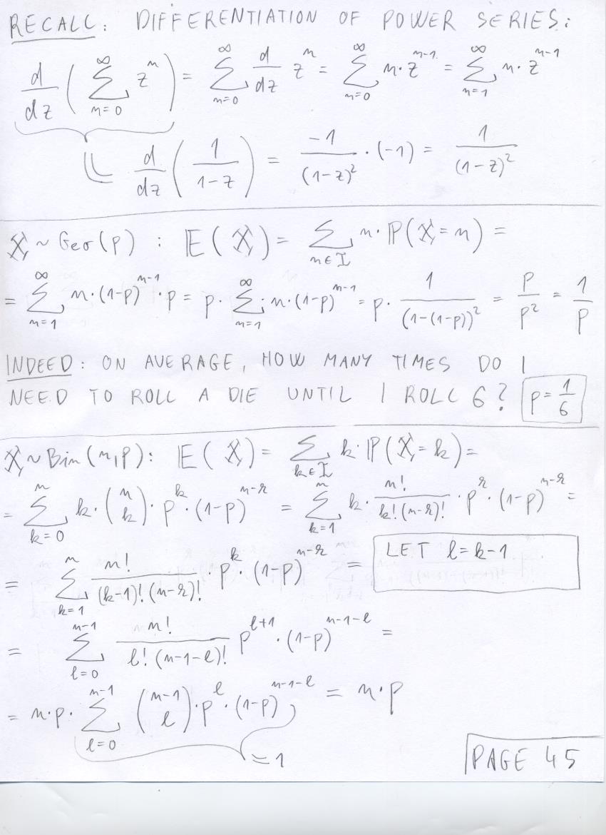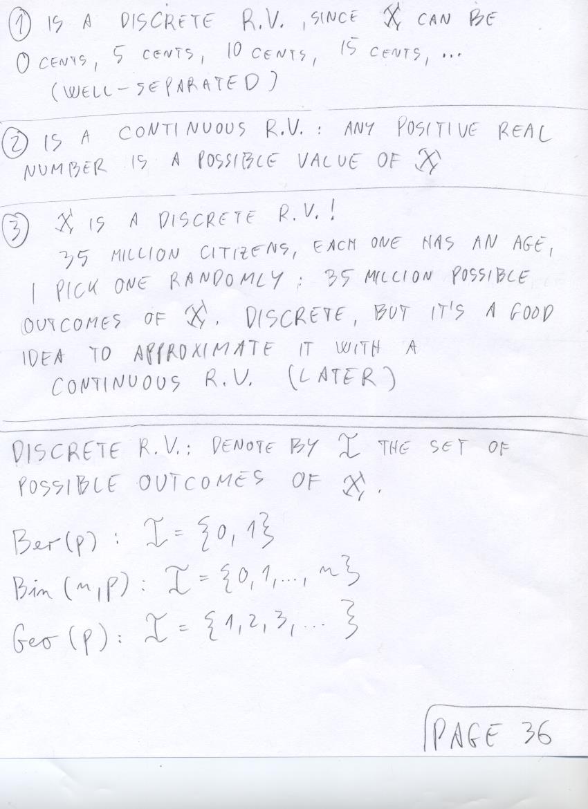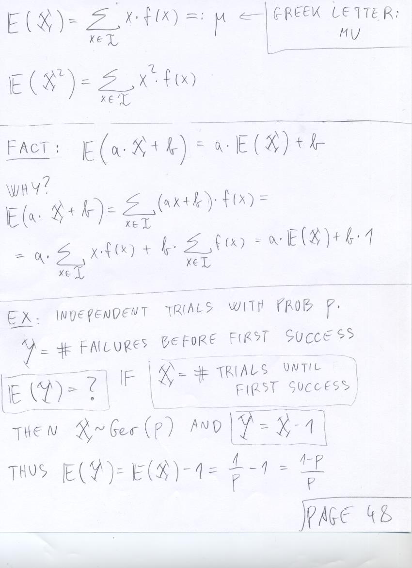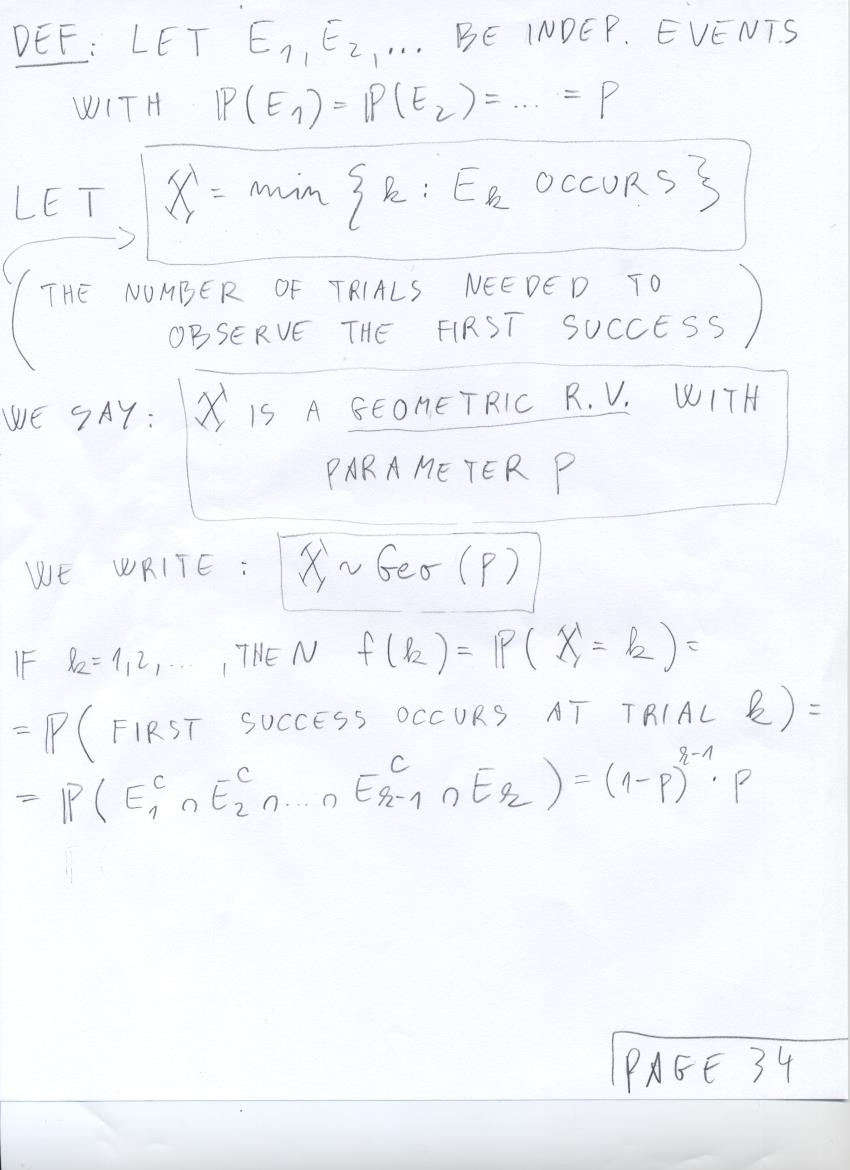 - July 17 (discrete R.V.'s, total mass of mass function is 1, NBin(r,p), expected value of Geo(p)):