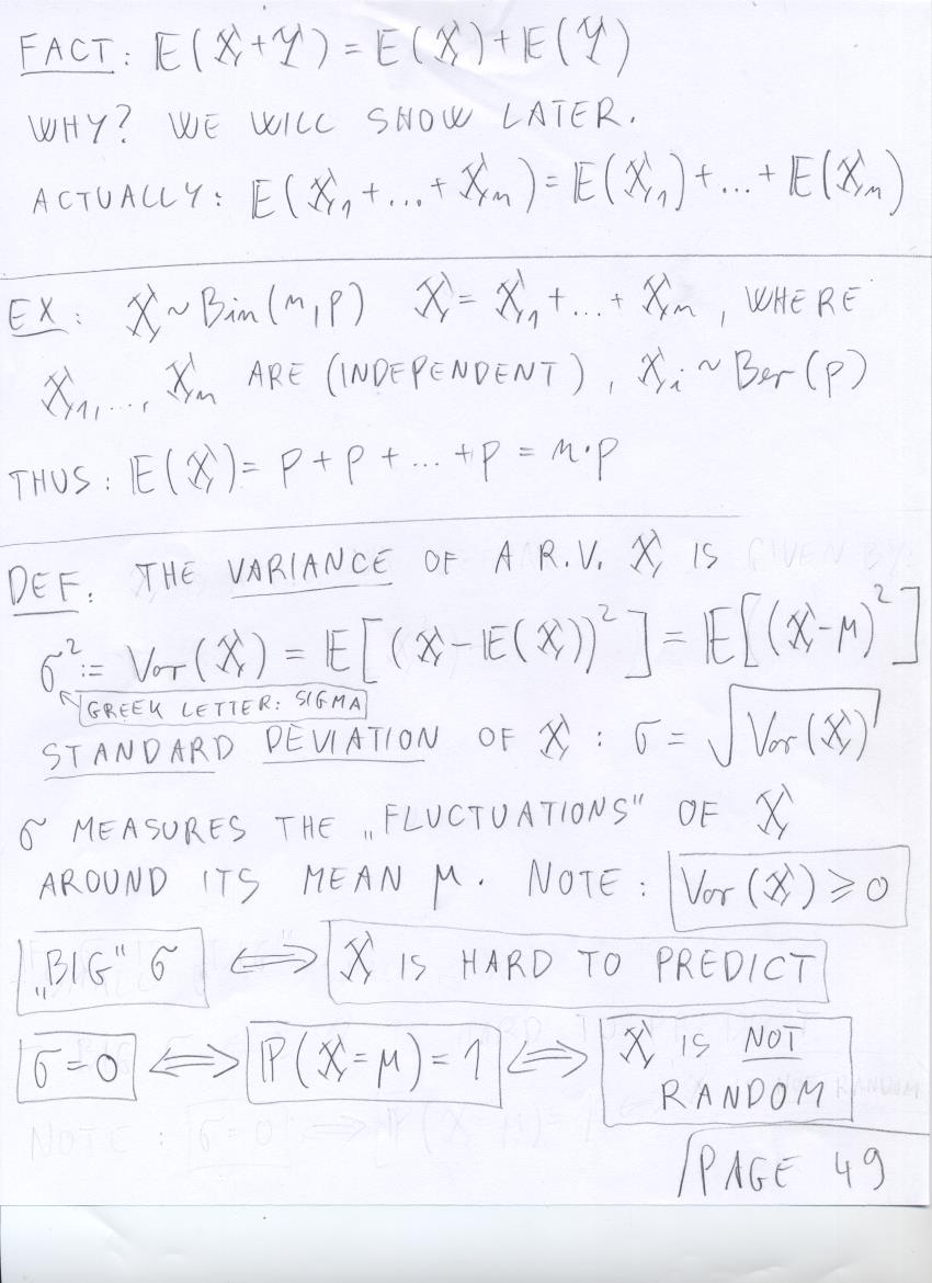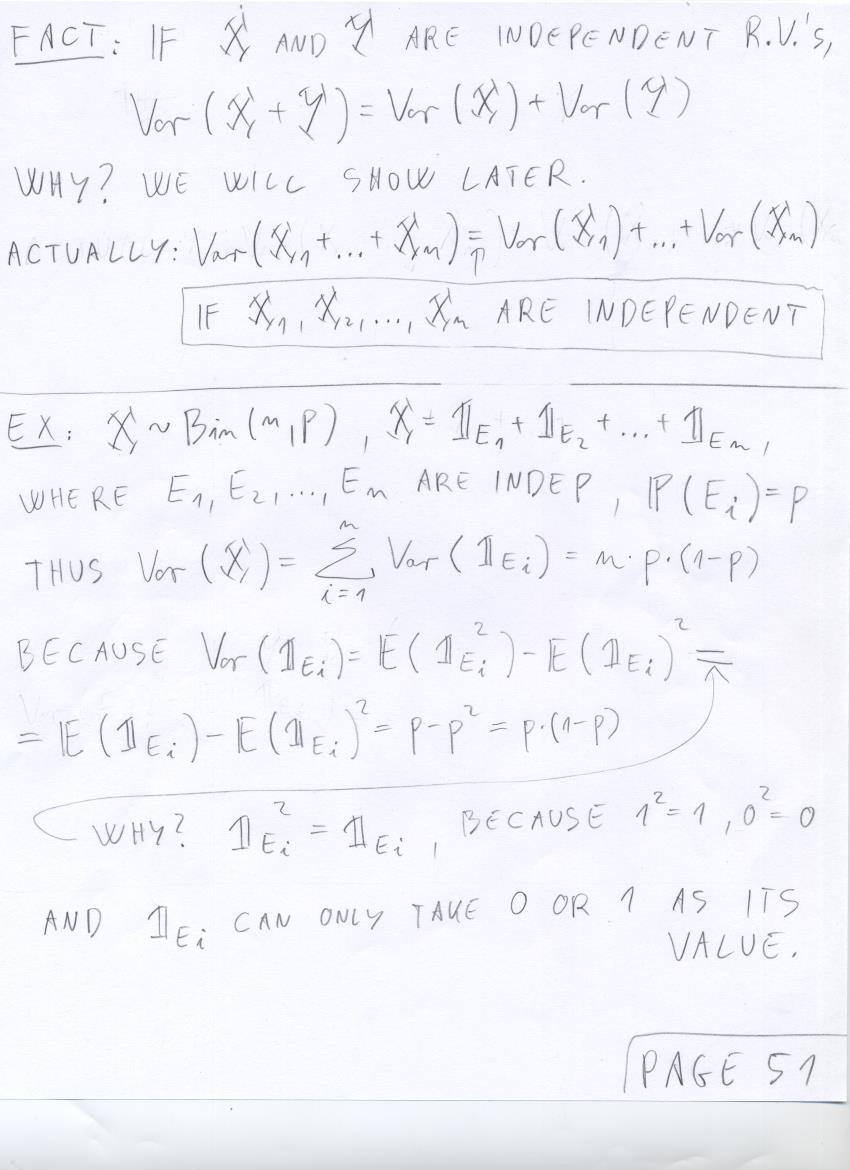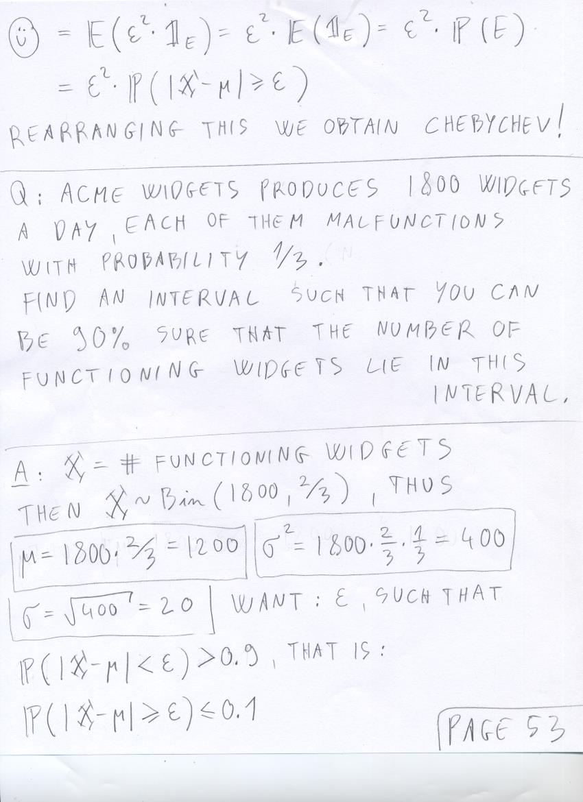 - July 18 (expected value of Bin(n,p), expected value facts, variance, Chebychev's inequality):
