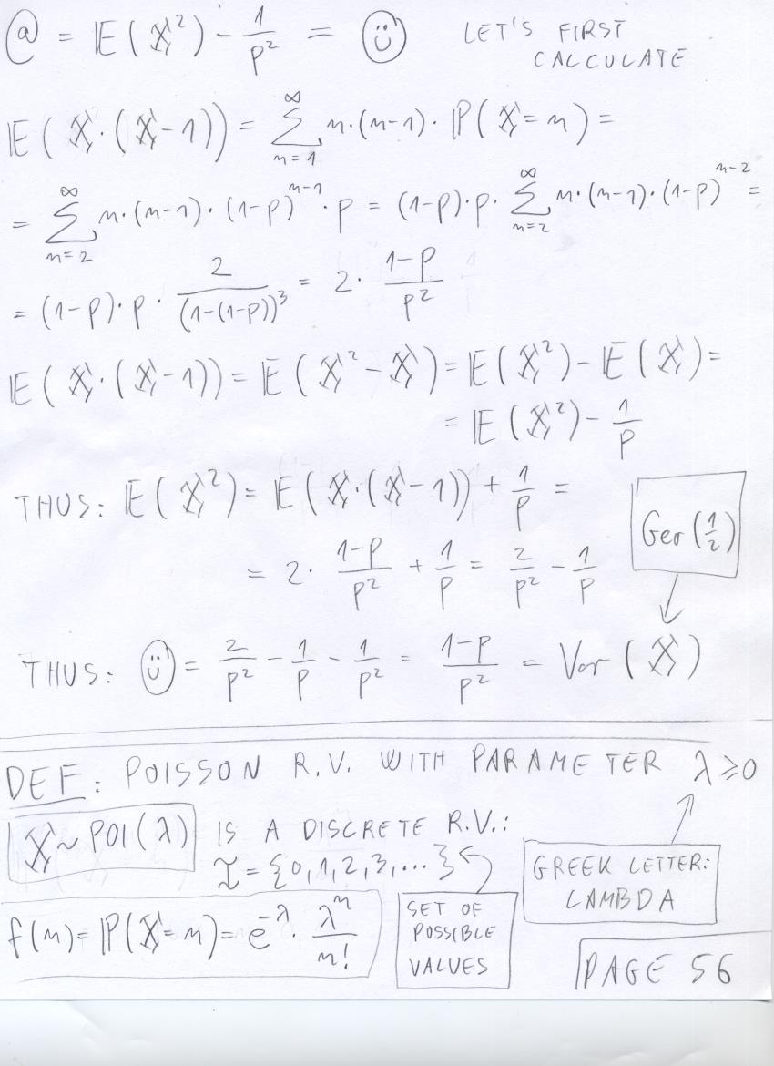 - July 22 (Variance of Geo(p), Poisson r.v.'s):