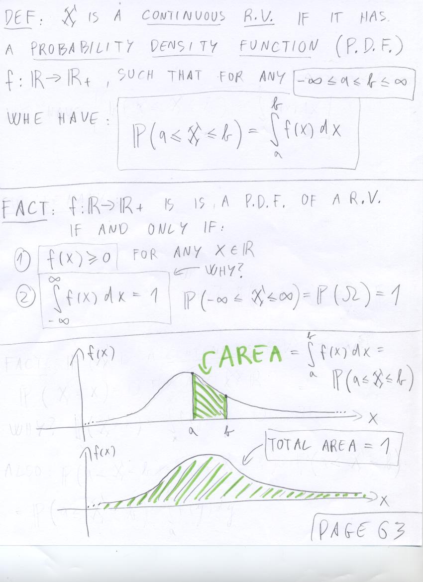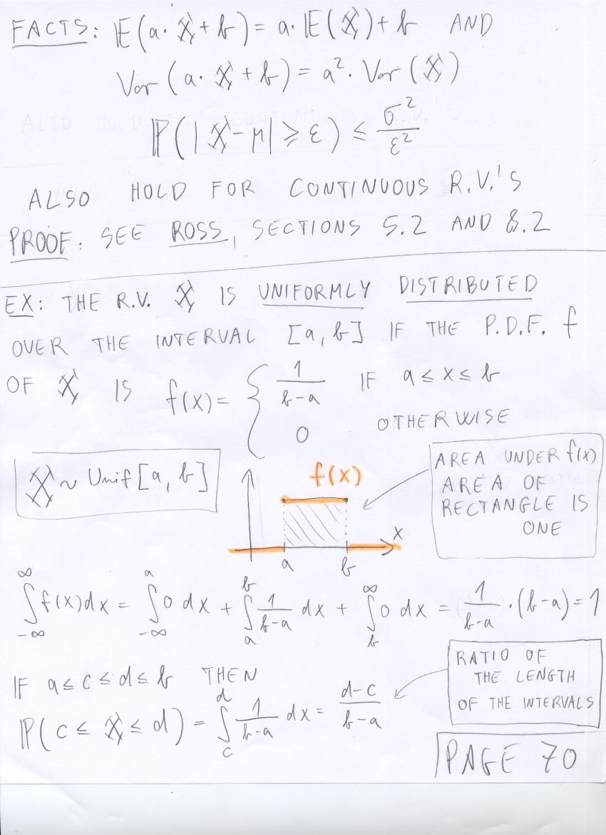- July 24 (continuous r.v.'s, probability density function, cumulative distribution function, Unif[a,b], Exp(lambda)):