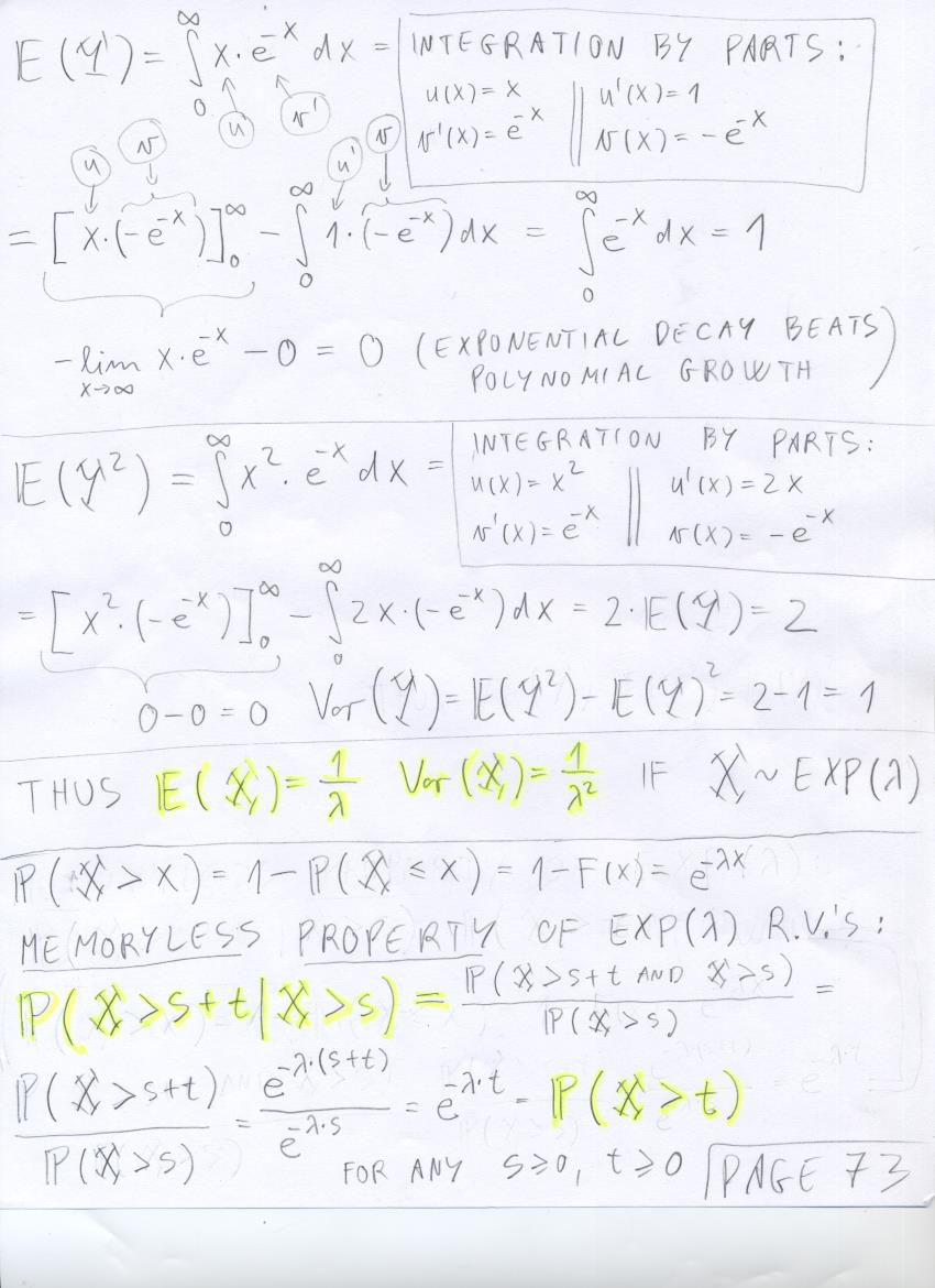 - July 25 (expected value, variance and memoryless property of Exp(lambda) distribution, normal distribution):