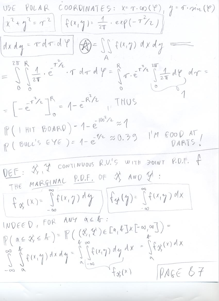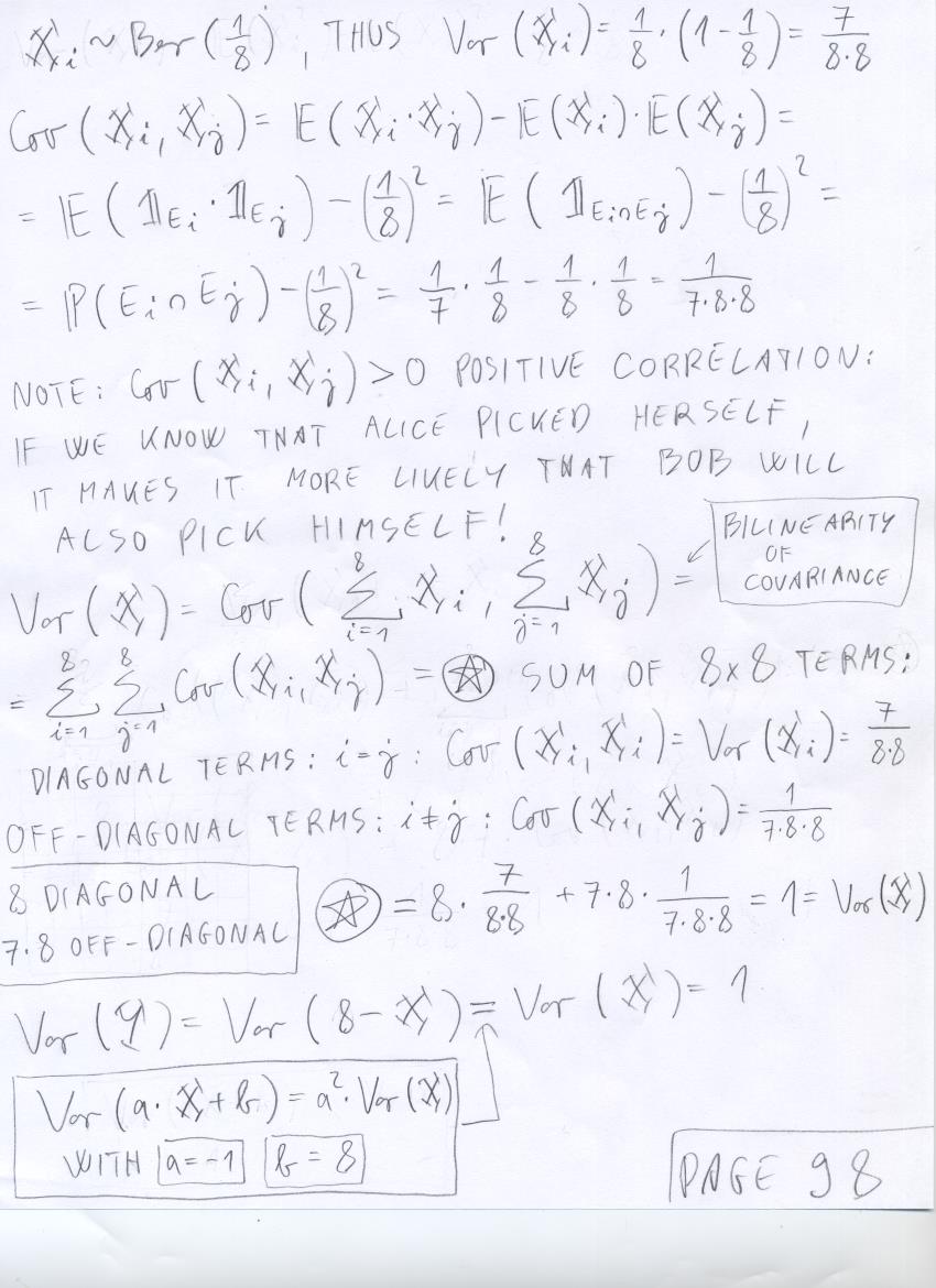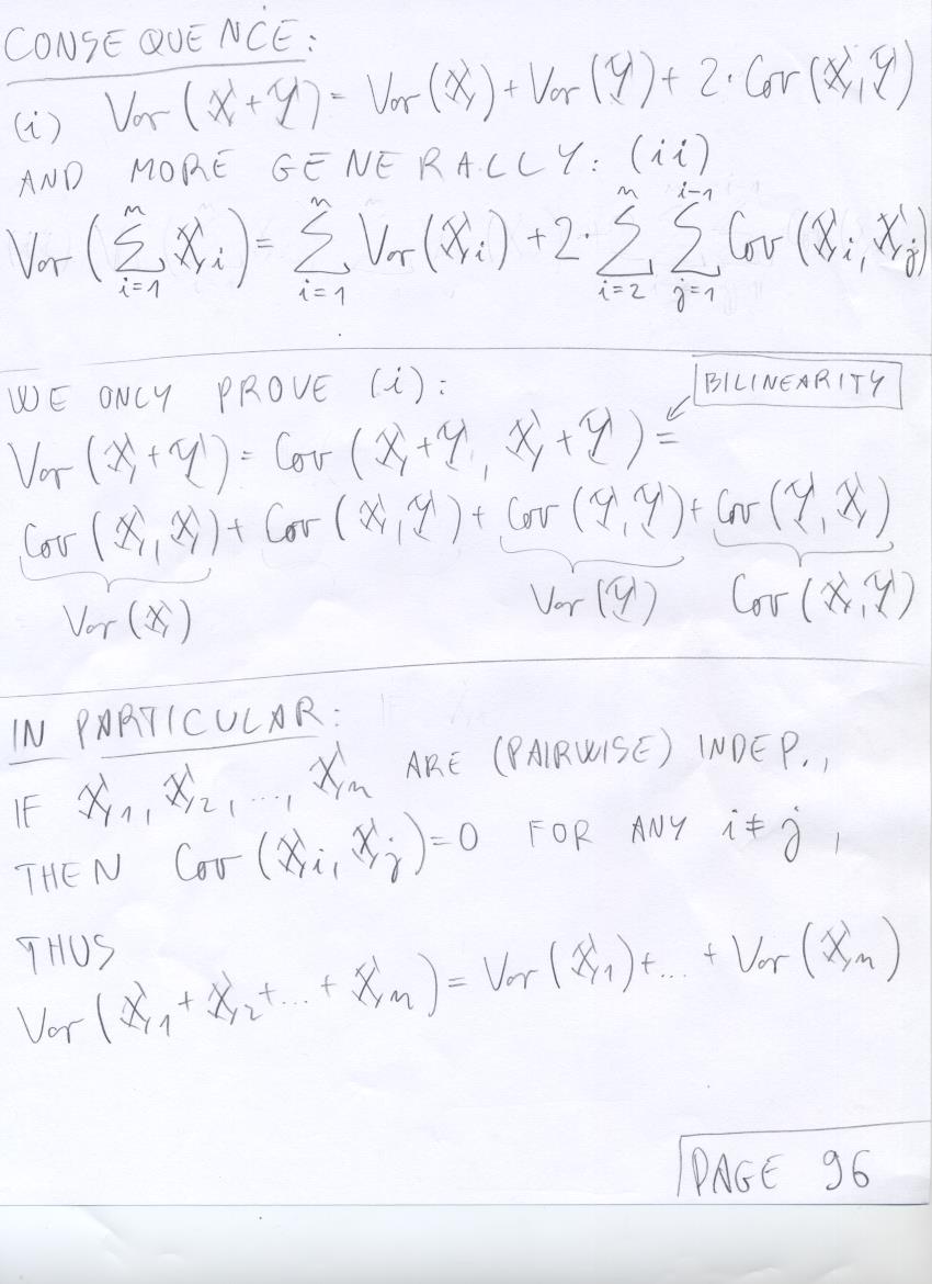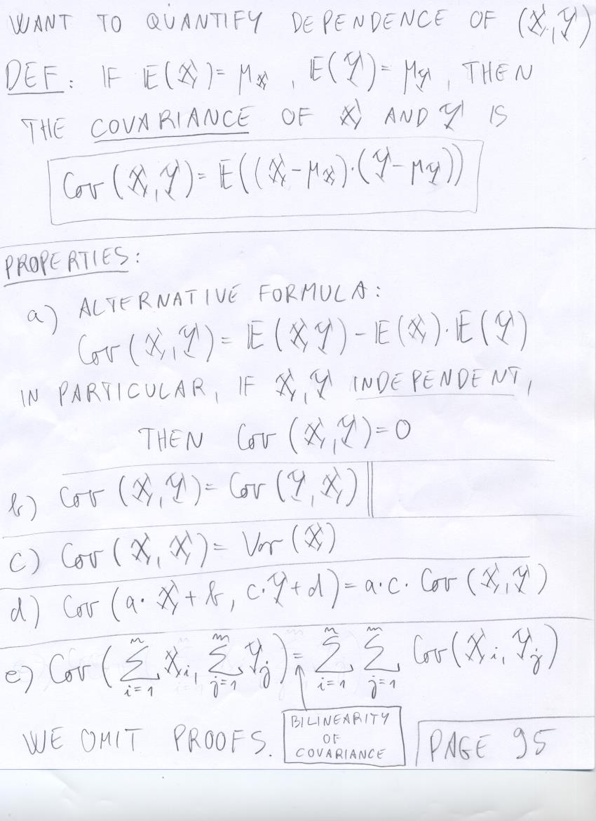 - July 31 (uniform distribution and areas, covariance, variance of sums of r.v.'s, correlation):