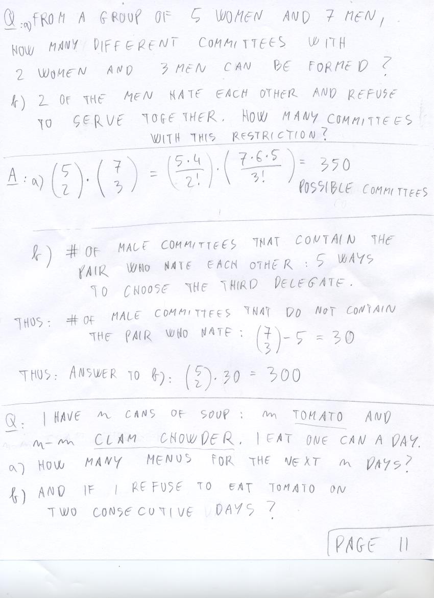 - July 3 (combinatorics: permutations, combinations, divisions, poker):